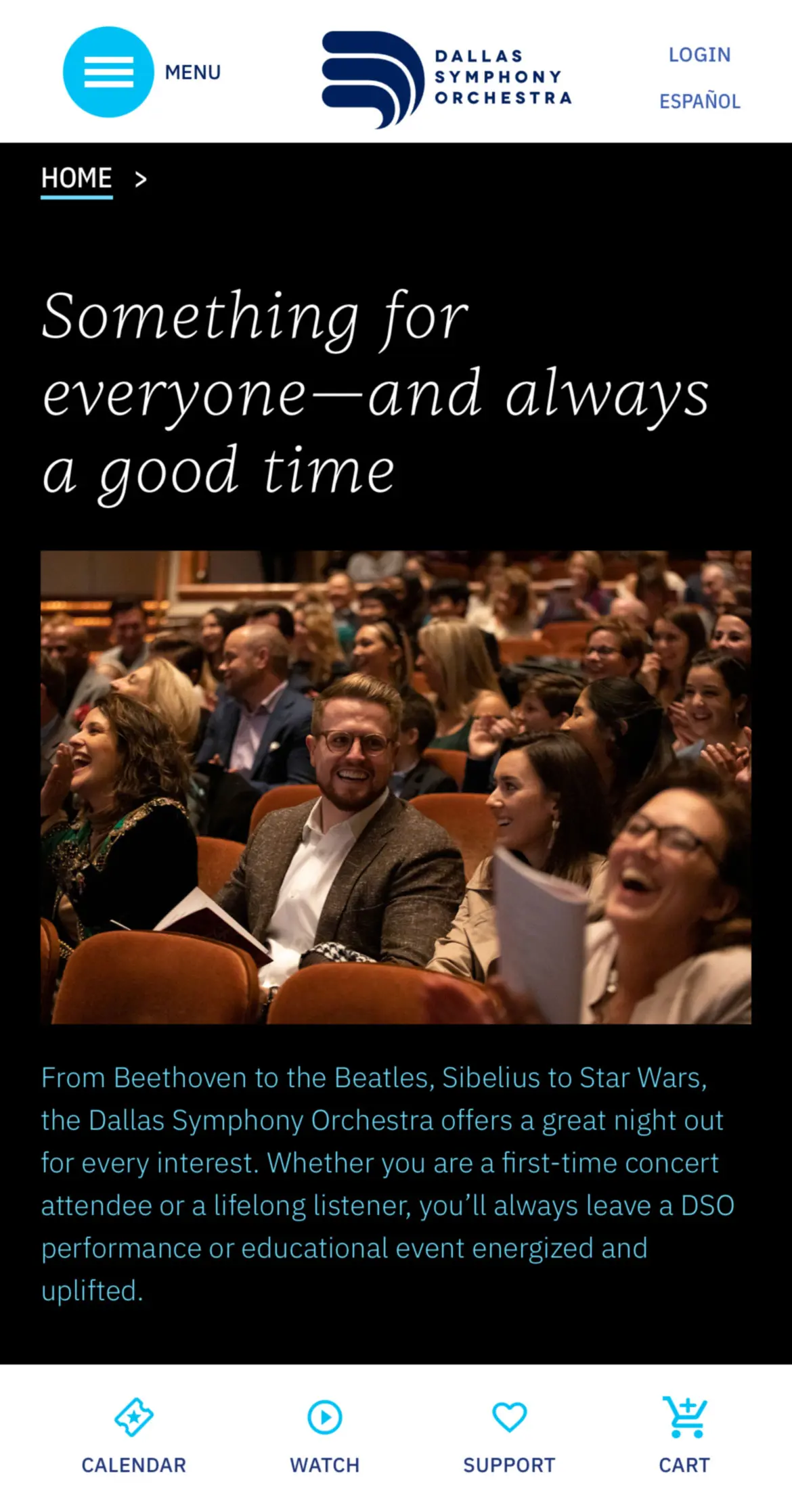 We also developed custom features based on the DSO’s specific needs and offerings: a streaming index that brings forward key performances and integrates curated video and audio content—and a calendar that features nimble filtering options and a single-click ticket pathway. We also integrated their Tessitura commerce platform and provided one-button translation to Spanish… all on a tight deadline.