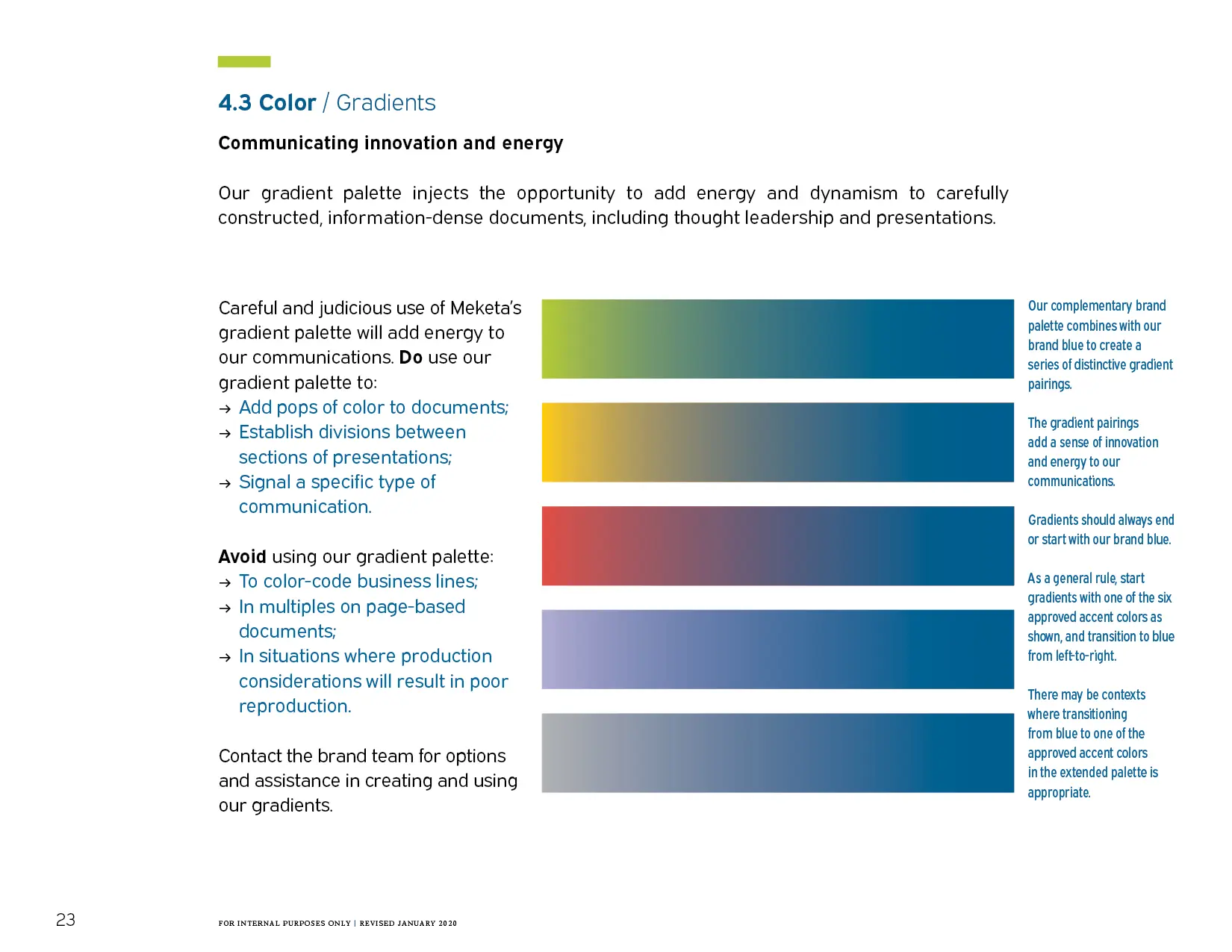 Meketa’s entire brand system—including the new brand strategy, messaging, visual brand expression, and representative examples of the brand in action—is documented in a comprehensive brand book: an asset for the firm that will deliver results over the long term.