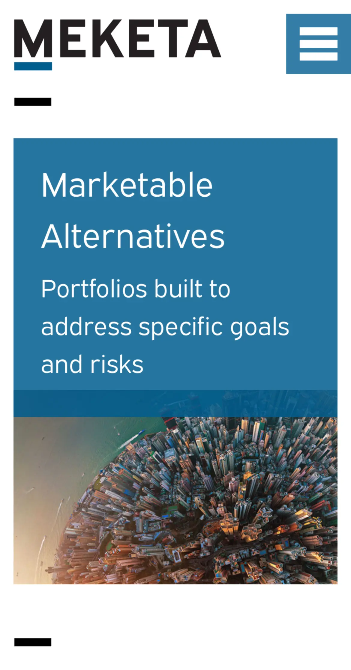 Meketa’s brand strategy, verbal brand expression, and visual brand expression, together now accurately and compellingly communicate who Meketa is today—and is becoming. Supported by the launch of a comprehensive reimagined website—that we planned, designed, and developed—the firm is now positioned to take best advantage of opportunities to advance their business.